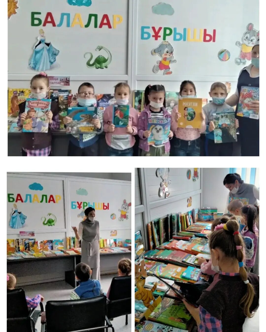 Балалар оқу залында бар балаларға арналған журналдарды қуана тамашалады: «Айгөлек», «Фантазеры», «Непоседа».