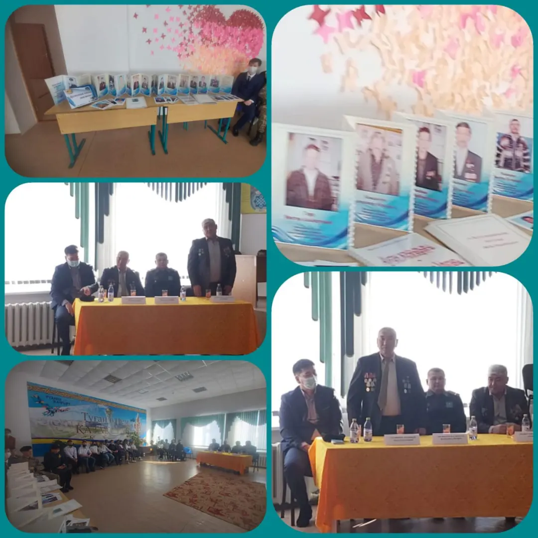 Мақсаты: Ауған соғысы ардагерлерін еске алу, құрметтеу, өскелең ұрпаққа ардагерлердің ерен еңбектерін үлгі ету. Қонаққа ауған соғысының ардагерлері: С.Таджиев, Ғ.Свайкулов, аудандық қорғаныс істері бөлімінің басшысы Қ.Мединаев келип, сөз сөйледі. Өмірден озған ардагер ағаларымыз үшін 1 минут үнсіздік жарияланды.