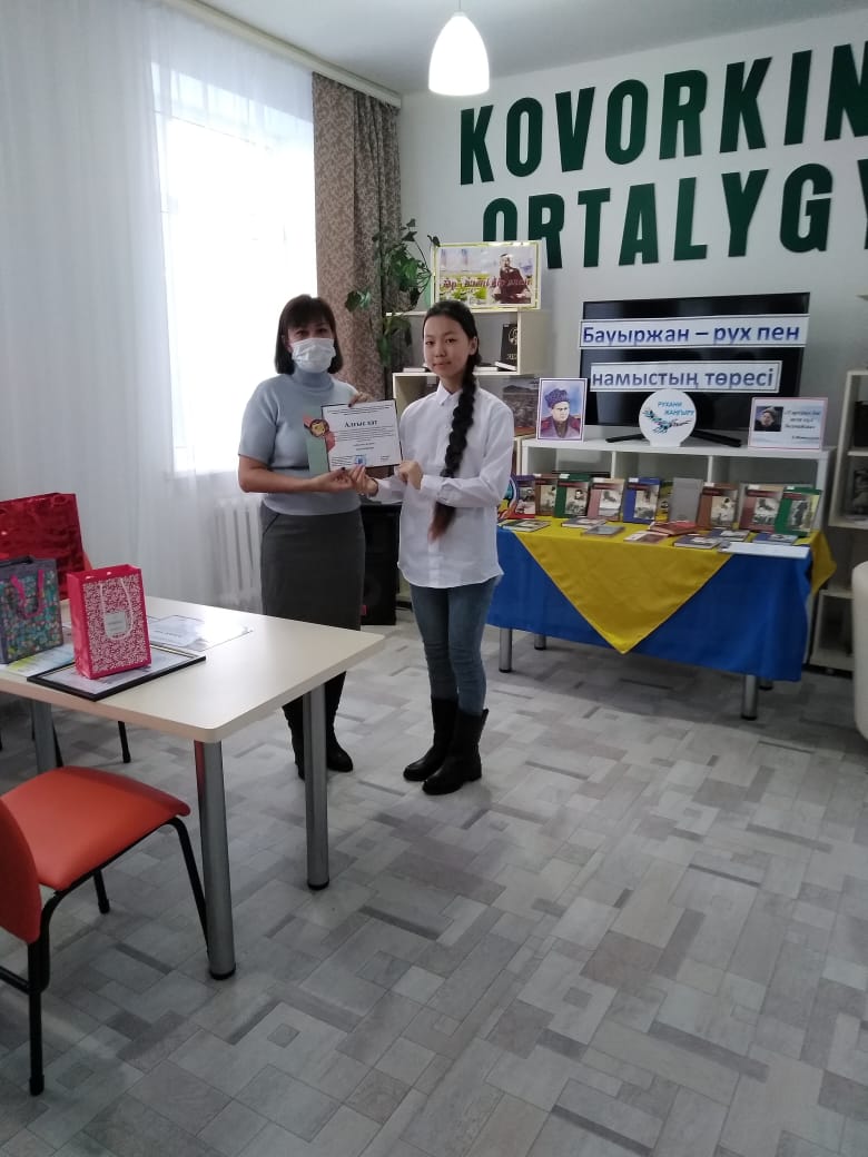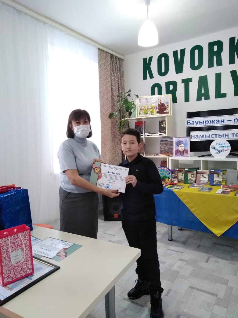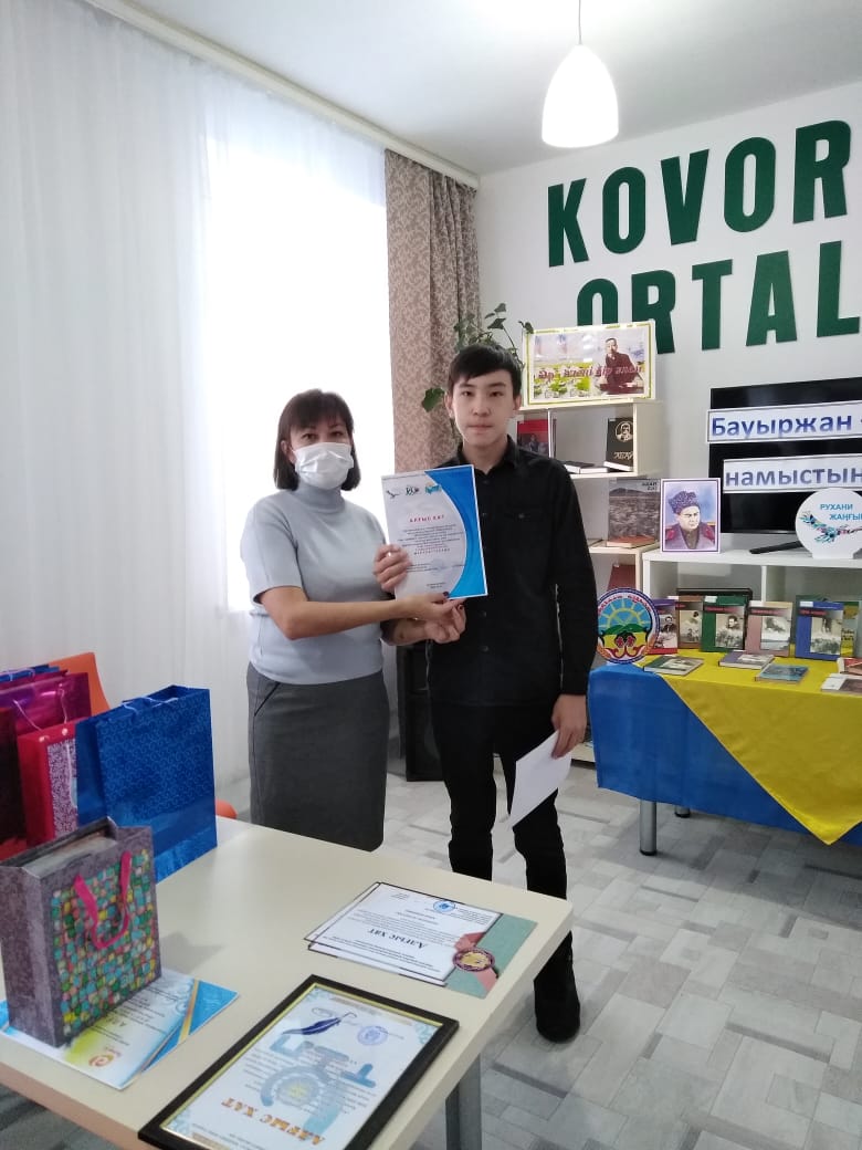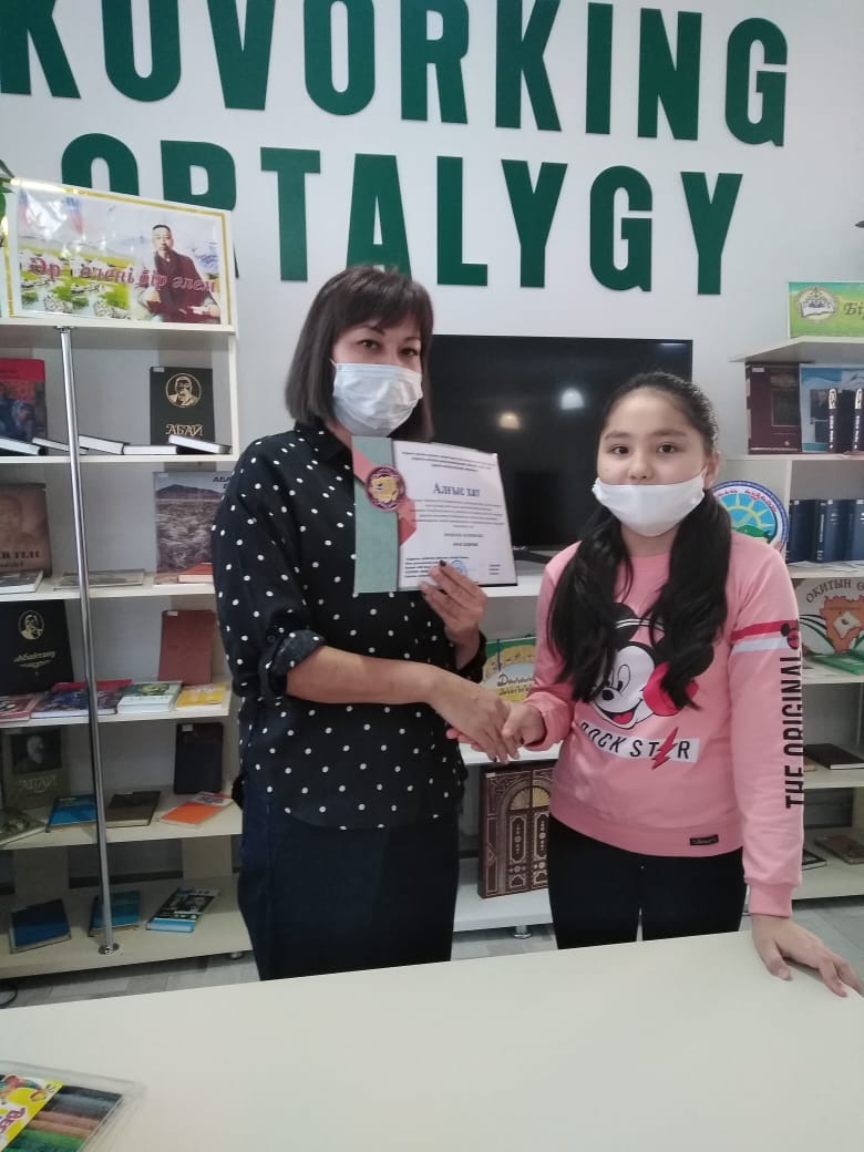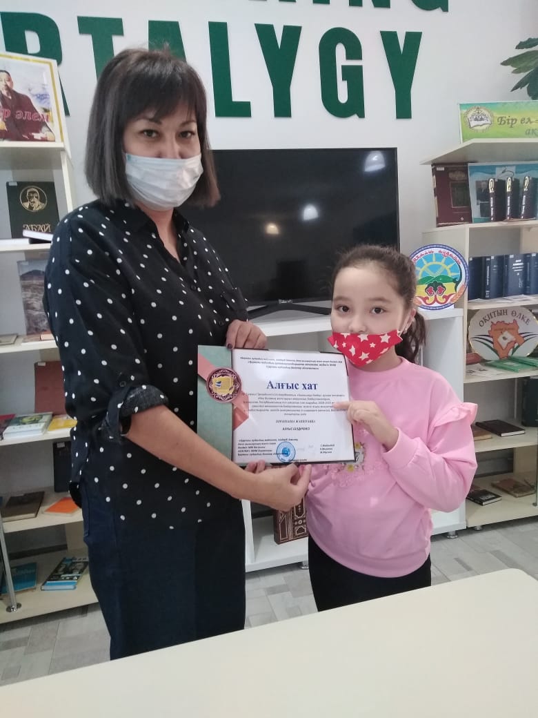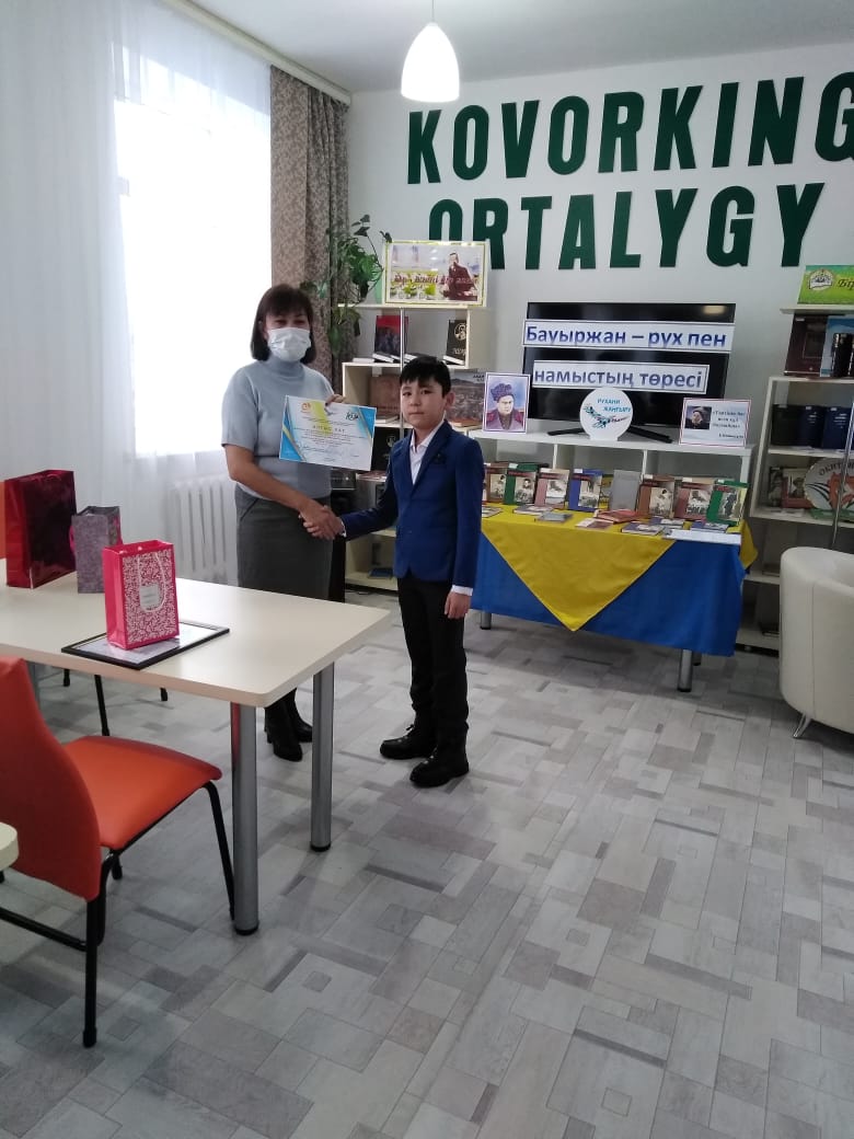 3.Н.Байғанин атындағы облыстық балалар кітапханасының ұйымдастыруымен өткен халық ақыны Нұрпейіс Байғаниннің 160 жылдығына арналған «ОҚЫ, АҚТӨБЕЛІК ӨРЕНІМ!» облыстық оқу марафонына аудан көлемінде қатысқаны үшін Н.Байғанин атындағы облыстық балалар кітапханасының директоры С.Хакимовадан Тулебаев Нұрсұлтан Алғыс хатпен және сыйлықпен марапатталды.