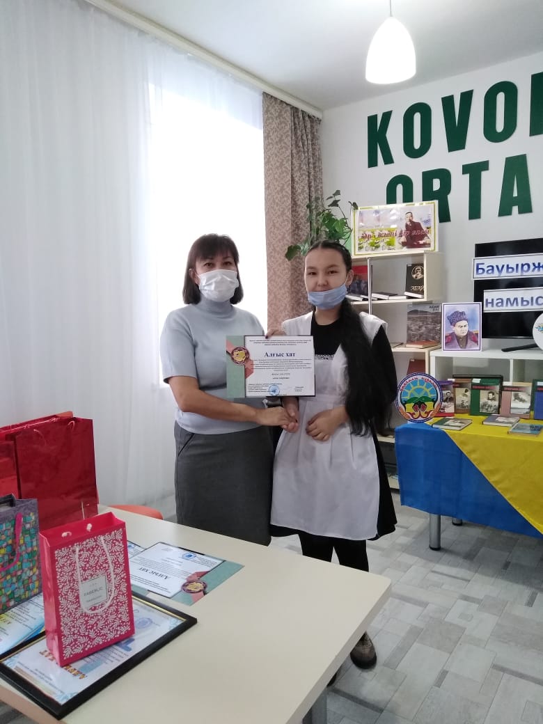 2.«Ойыл аудандық ішкі саясат, мәдениет және тілдерді дамыту» ММ қолдауымен, Ойыл аудандық балалар кітапханасының ұйымдастыруымен өткізілген «Бала Би - 2020» атты балалардың онлайн шығармашылық байқауына Канмамай Кәусар №2 Бадамша орта мектебінің 7 «б» сынып оқушысы қатысып, Алғыс хатпен сыйлыққа ие болды.
