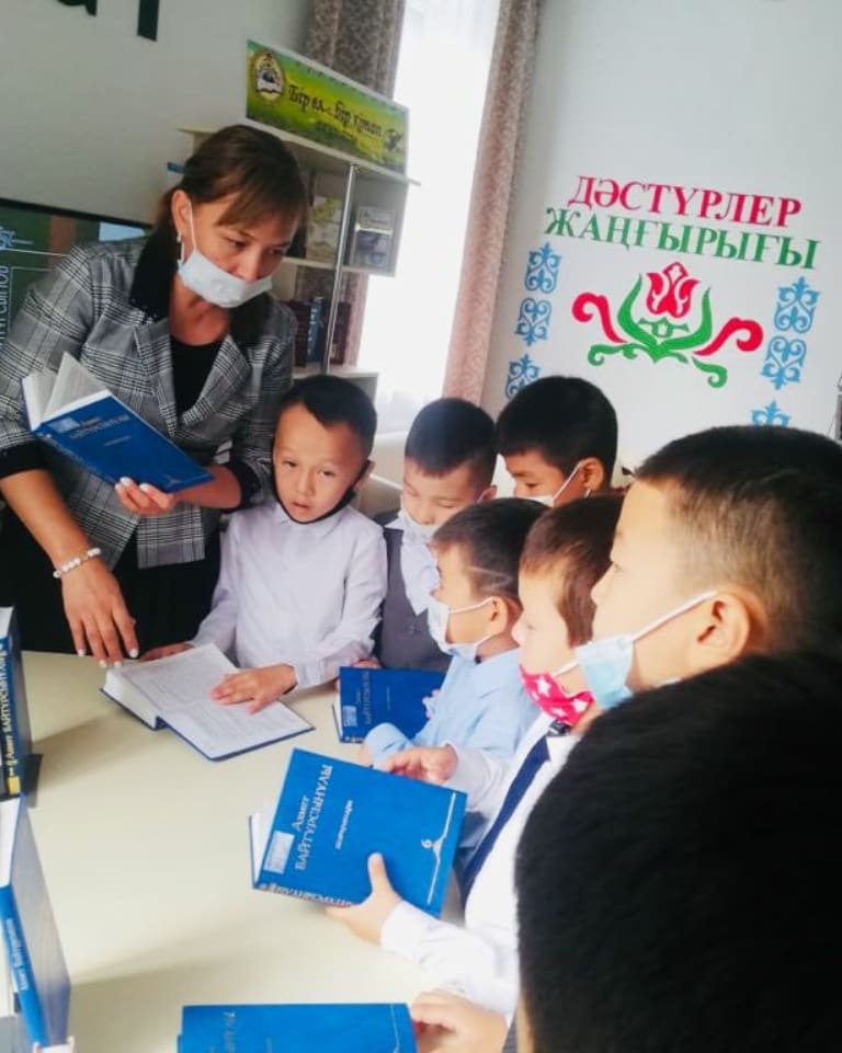 Іс-шара бойынша «Ахмет Байтұрсынов тағылымы» атты кітап көрмесіне библиографиялық шолу өтті. Көрмеге қазақ тілі білімінің іргетасын қалаушы, ірі-ғалым, ағартушы – педагог, сөз құдіретін танытқан танымал ақын, қазақ баспасөз тілінің ұлттық үлгісін көрсеткен талантты публицист, туған халқының рухани дүниесін көтеруге көп күш жұмсаған мәдениет қайраткері – Ахмет Байтұрсыновтың «Ақ жол», «Тіл тағылымы», «Маса», «Жоқтау» т.б. қаламынан туған шығармалары жас оқырмандар назарына ұсынылды.