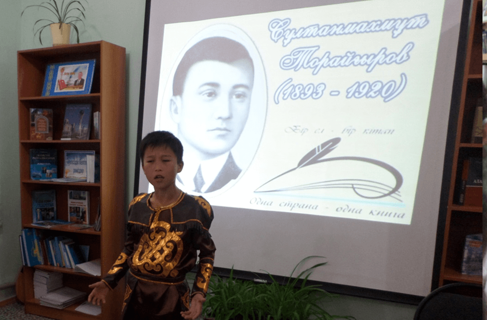 Сегодня, в рамках программы «Рухани жаңғыру» мы переосмысливаем и обогащаем нашу историю, культуру, национальную память. 19 октября текущего года, по ставшей традиционной ежегодной республиканской акции «Бір ел- бір кітап» в районной детской библиотеке прошел конкурс чтецов, посвященный творчеству крупного, видного акына казахской литературы 20 века Султанмахмута Торайгырова. Этот конкурс юных чтецов является важным вкладом в популяризацию чтения, демонстрацию шедевров поэзии и прозы казахстанской литературы.